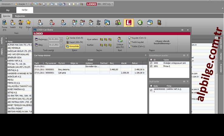 Tüm yazıcılar için standart raporlar hazır olarak gelmektedir.