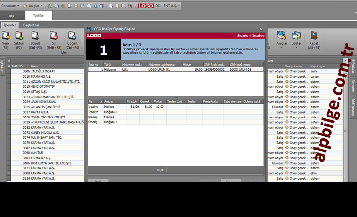 (İmalat yapan işletmeler için üretim Modülü Tıger Plus'da) |